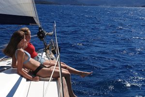 Voordat we terugzeilen naar de thuishaven, maken we nog een tussenstop bij het eilandje Vido, vlak voor de kust van Corfu Stad. Een laatste duik in het heerlijke water en daarna nog een mooi stukje zeilen tot we weer terugkeren op het beginpunt van de zeilvakantie. Wat een topvakantie was dit…