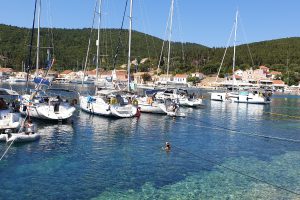 Ten westen van Erikoussa ligt Othoni, een ander slaperig eilandje, op maar zo’n 40 zeemijl voor de kust van Italië. Op Othoni is een prachtige baai om eens lekker een middagje te snorkelen en zwemmen tijdens de lunch. Het heet White Sand Beach en aan die naam is niks gelogen. Een prachtig wit zandstrand met turquoise water en mooie rotsen. Aan het eind van de middag varen we door naar het kleine haventje van Othoni.