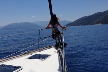 De omgeving rond Mourtos Sivota staat bekend goede beschutting en z’n waanzinnig mooie baaien met kraakhelder water en daar is niks aan gelogen. We doen verschillende baaien aan en nemen overal een heerlijk verfrissende duik voor we er uiteindelijk eentje uitkiezen waar we gaan overnachten.