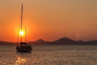 Mathraki is het kleinste eilandje van de drie en het lijkt hier ook echt of de tijd 100 jaar heeft stilgestaan. Een mini haventje aan de oostkust waar vrijwel alleen kleine vissersbootjes liggen is de plek waar we aanmeren. Het is een echte aanrader om een wandeling te maken naar de andere kant van het eiland om daar de zonsondergang te bekijken vanaf de rotsen. Je kijkt hier richting Italië, over een schijnbaar eindeloze zee met een klein onbewoond rotseilandje op de voorgrond…