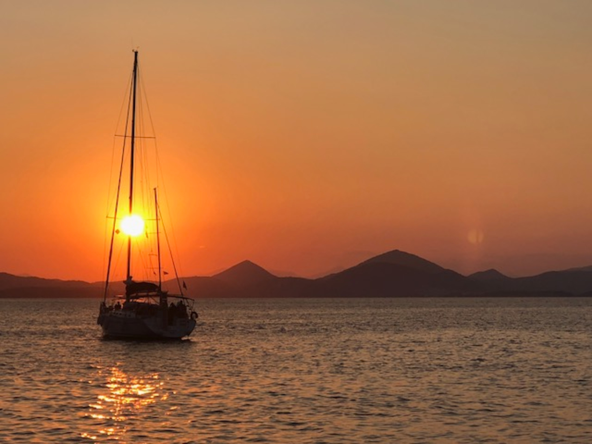 Van de noordoostkust varen we door naar de noordwestkust van Corfu. Agios Stefanos is een hele grote baai, omringd door een even groot zandstrand. ’s Avonds varen we met de dinghy naar de kant om te eten in een van de lekkere restaurants aan het strand waar we genieten van een prachtige zonsondergang.