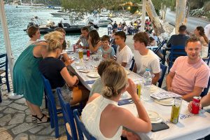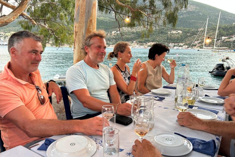We maken een oversteek terug naar Kefalonia waar we bij de zuidkust een ankerstop kunnen maken voor lekker zwemmen. Daarna komen aan bij het dorpje Poros. Dit dorpje is vrij klein en een oase van rust. Boven de helling ligt een restaurant met een fantastisch uitzicht en goed eten.